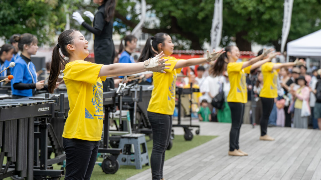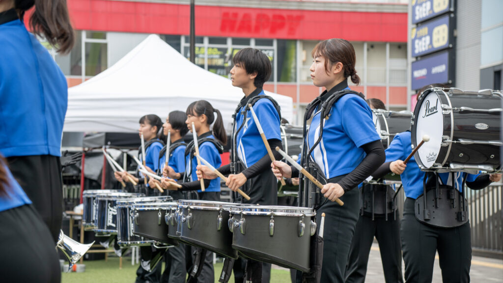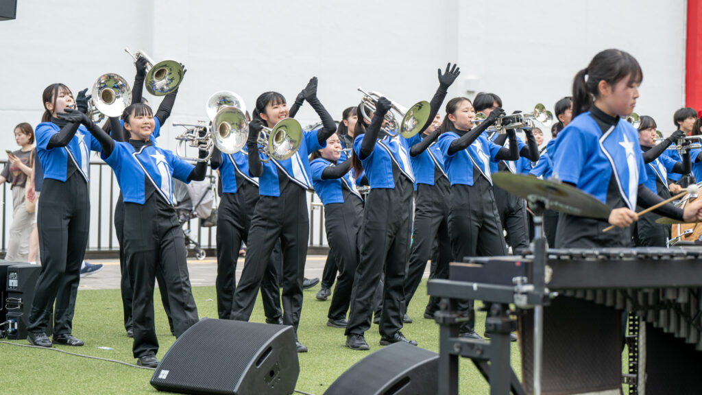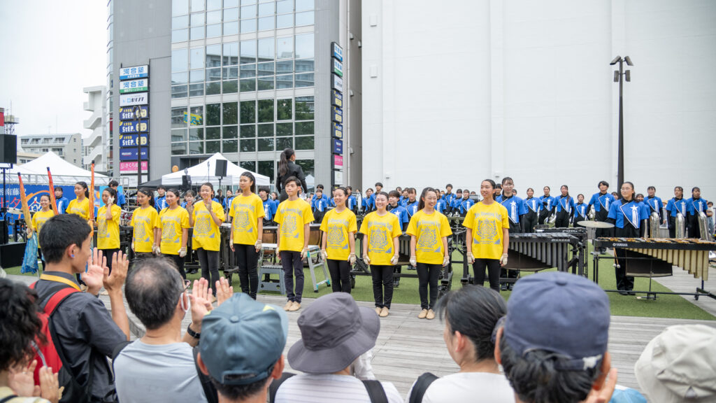 この暑い中、鮮やかなユニフォームと重い楽器を持たれる方も、一糸乱れぬ演奏に会場は大変盛り上がり、暑さ以上の熱気がいっぱい広がりました。